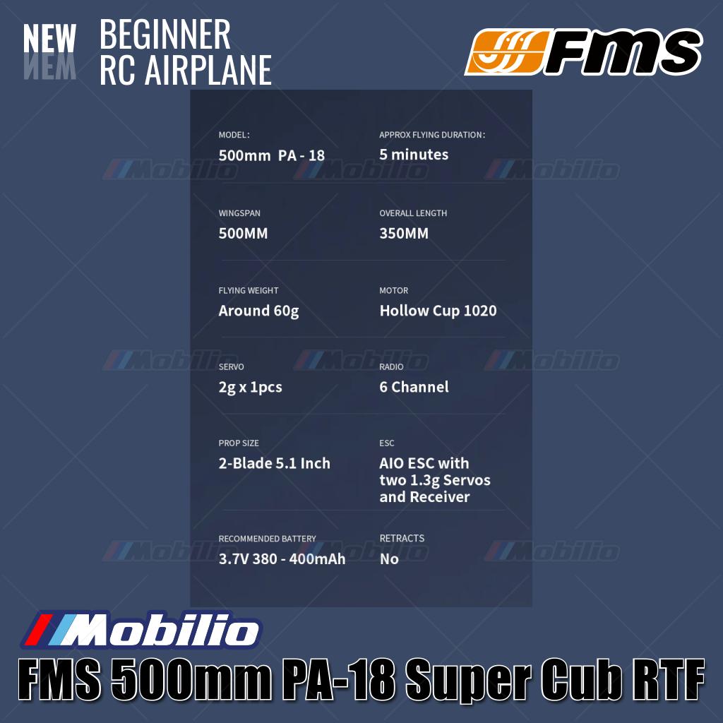 Pesawat RC Mikro FMS 500mm PA-18 Super Cub RTF Mudah Diterbangkan untuk Pemula
